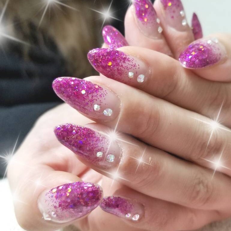 Apr 13, 17 · ジェルネイルでグラデーションといえば、ネイルのデザインの中でも基本というか王道で、人気のあるデザインですよね。カラーだけのグラデーションの縦横方向が違うグラデーションや、ラメのグラデーションとバリエーションも豊富。Oct 14, · 1 ストーンを乗せるネイルはマットのトップコートを塗る 2 細筆を使い、ラメ入りネイルで交差するようにラインを描く(ストーンを置く位置を始点に描くとバランスがとりやすい) 3 トップコートでストーンをつけて完成 ≪使用したネイル≫ピンク系の肌なじみのいいラメグラデーションにストーンやパール・メタルを飾ったデザインです キラキラと輝く華やかなデザインになっています 価格 ¥10,